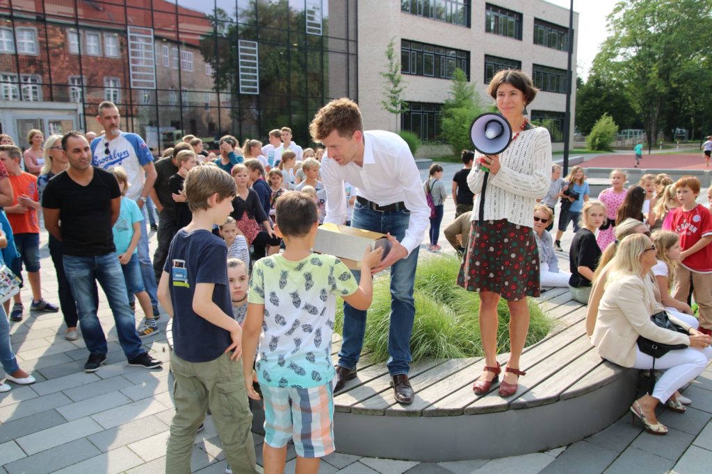 Am 24. August fand das traditionelle Begrüßungsfest für den neuen 5. Jahrgang statt. Bei – wie sollte es auch anders sein – traumhaftem Wetter fanden sich nachmittags alle Fünftklässler mit ihren Eltern auf dem Schulhof ein. Die reichhaltigen Buffets jeder Klasse luden zur Stärkung ein. Nach einer kurzen Begrüßung haben alle Klassen beim Schulleiter Herrn Behn sowie die Koordinatorin der Jahrgänge 5 bis 7 Frau Greschke eine Schatzkiste mit Briefen voller Wünsche und Vorstellungen abgegeben, die am Ende der 7. Klasse wieder ausgegeben werden. Während die einzelnen Klassen mit ihren Paten diverse Spiele machten, konnten Eltern und Klassenleitungsteams in gemütlicher Runde über die ersten Schultage plaudern.