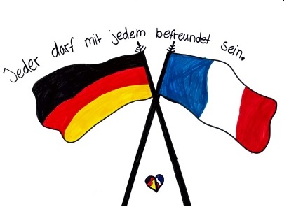 Einige Französischgruppen haben die Deutsch-Französischen Fahnen auf kreative Art und Weise dargestellt. Mit Lego, Bügelperlen, farbigem Kuchen, Luftballons oder eigenen Zeichnungen wurden die Fahnen nachgebaut. Ein Schüler hat seine Mund-Nasen-Schutzmaske mit der Deutsch-Französischen Fahne verschönert. In Videokonferenzen hatten Schüler*innen Spaß daran, innerhalb von nur drei Minuten sich deutsch-französisch zu dekorieren. Nach Ablauf der Zeit wurden gemeinsam die Kameras angemacht. Die vielfältigen Ergebnisse in so kurzer Zeit waren beeindruckend und sehr amüsant. Manche Schüler*innen haben sogar eigene Erklärvideos „Faire des crêpes“ gedreht. Ältere Schüler*innen haben sich auf kreative Art und Weise mit der Rede Merkels/ Macrons auseinandergesetzt und Plakate zum Thema „Gemeinsam die Zukunft angehen“ erstellt.