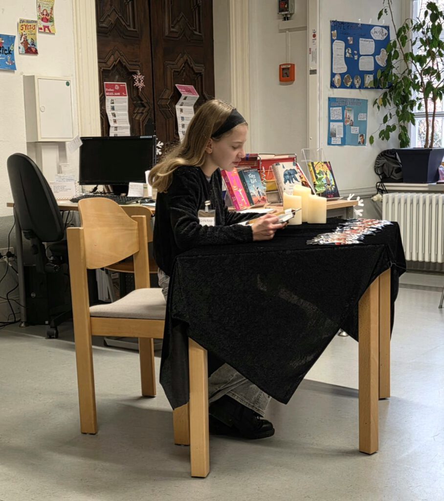 Am 05.12.2025 trafen sich die Klassensiegerinnen und –sieger zum schulinternen Vorlesewettbewerb in der Schulbibliothek. Nele Zobel (6a), Sophia Fehn (6b), Lucy Ifeagwazi (6c), Greta Koopmann (6d) und Theo Christian Hartanto (6e) präsentierten vor einem kleinen Publikum aus Mitschülern und der Jury ihr Vorlesetalent. Die Jury setzte sich aus zwei Lehrkräften und zwei ehrenamtlichen Mitarbeiterinnen der Schulbibliothek zusammen.