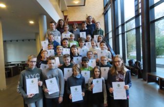 Endlich halten drei stolze Schülerinnen des GiS ihre verdienten DELF-Zertifikate in den Händen, die sie gerade von Herrn Behn (hinten links im Bild) auf der Schlossbrücke empfangen haben: Marie Liebich (Jg.12), Finja Lippardt (Kl.10nwit) und Hannah Sander (Kl.10b) (vorne im…