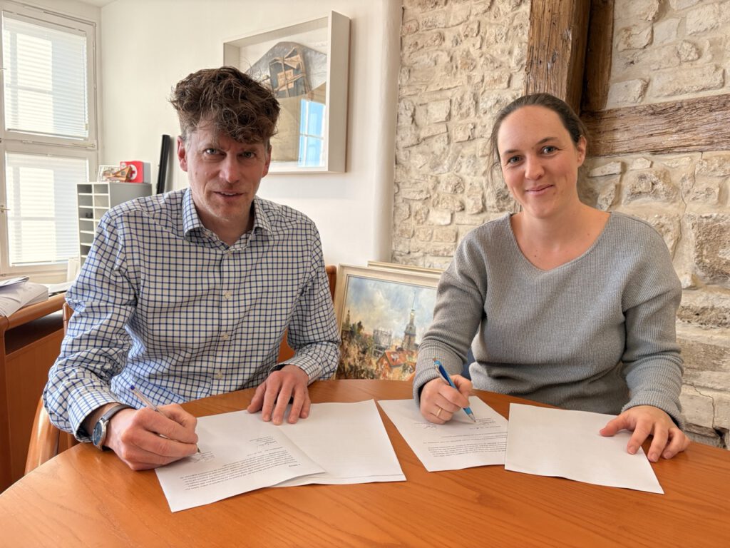 Rechtzeitig zum Start der neuen Patenschülerausbildung wurde die aktualisierte Kooperationsvereinbarung zwischen unserer Schule und der Kreisjugendpflege Wolfenbüttel unterzeichnet. Schulleiter Oliver Behn und Kreisjugendpflegerin Lina Becker besiegelten damit die weiterhin enge Zusammenarbeit.