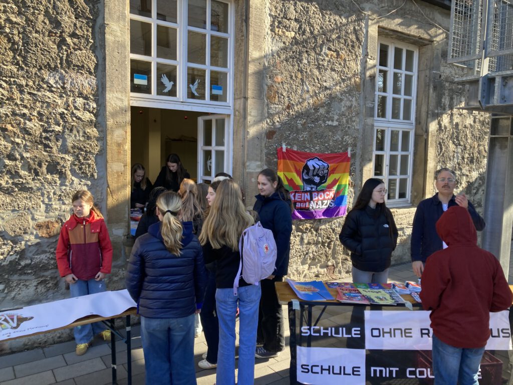 Darauf wurde auch in den Workshops Wert gelegt, welche von der Naturfreundejugend für die Jahrgänge 9 und 11 angeboten wurden. Die Schülerinnen und Schüler lernten, rechtsextreme Erscheinungsformen zu erkennen, einzuordnen sowie verantwortungsvoll und couragiert zu reagieren.
